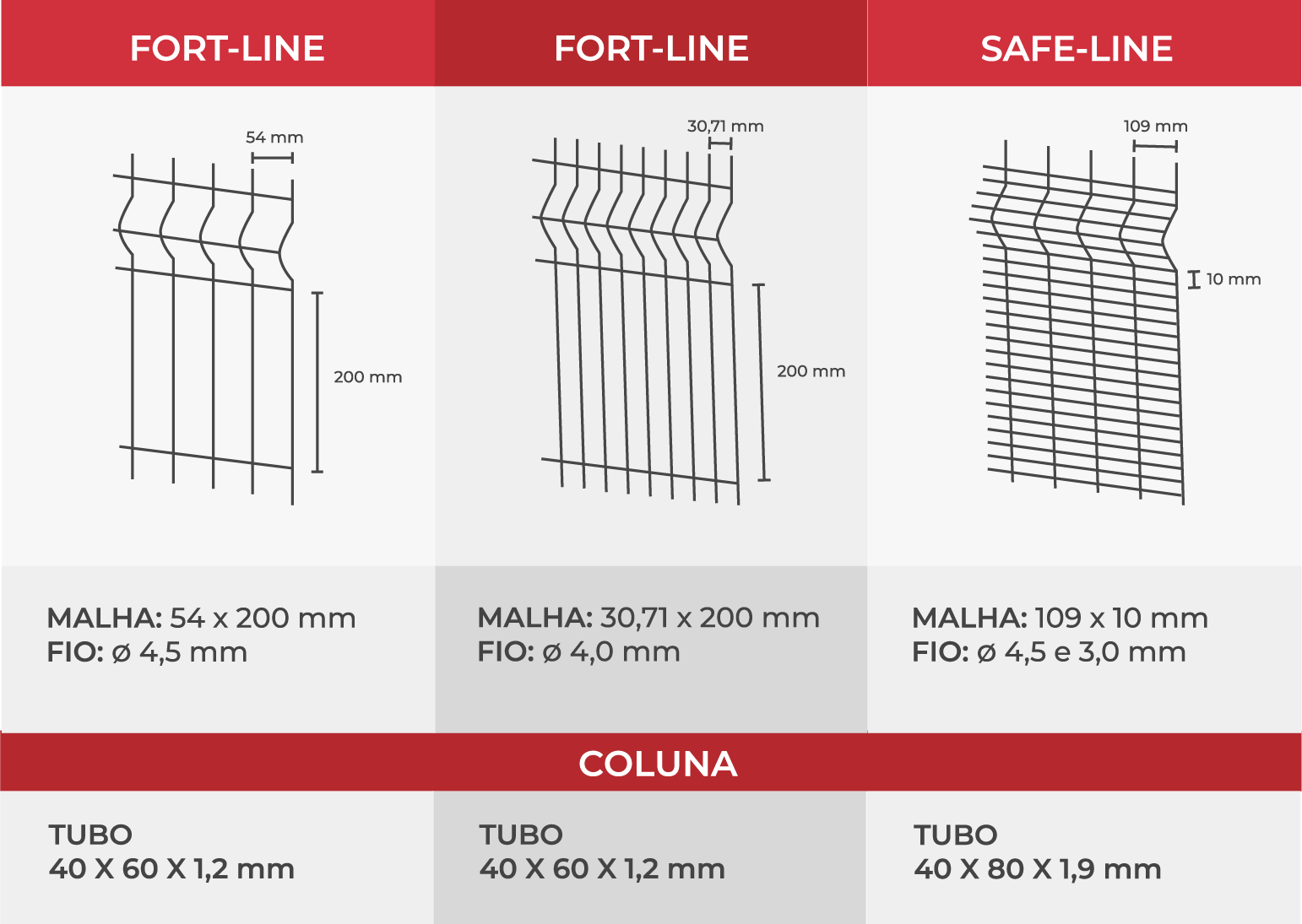 Confira as opções de fixação e compare os diferentes modelos de gradis disponíveis para personalizar nosso serviço de cercamento, garantindo conformidade com a NR-12. Oferecemos modelos em Fort-Line e Safe-Line, disponíveis em diversas dimensões de malhas e tubos.
